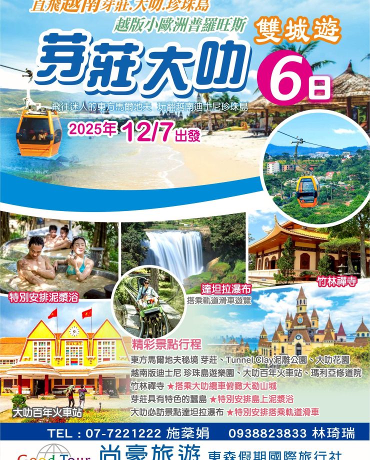 【 2025/12/07-12 】芽莊、大叻 6日遊