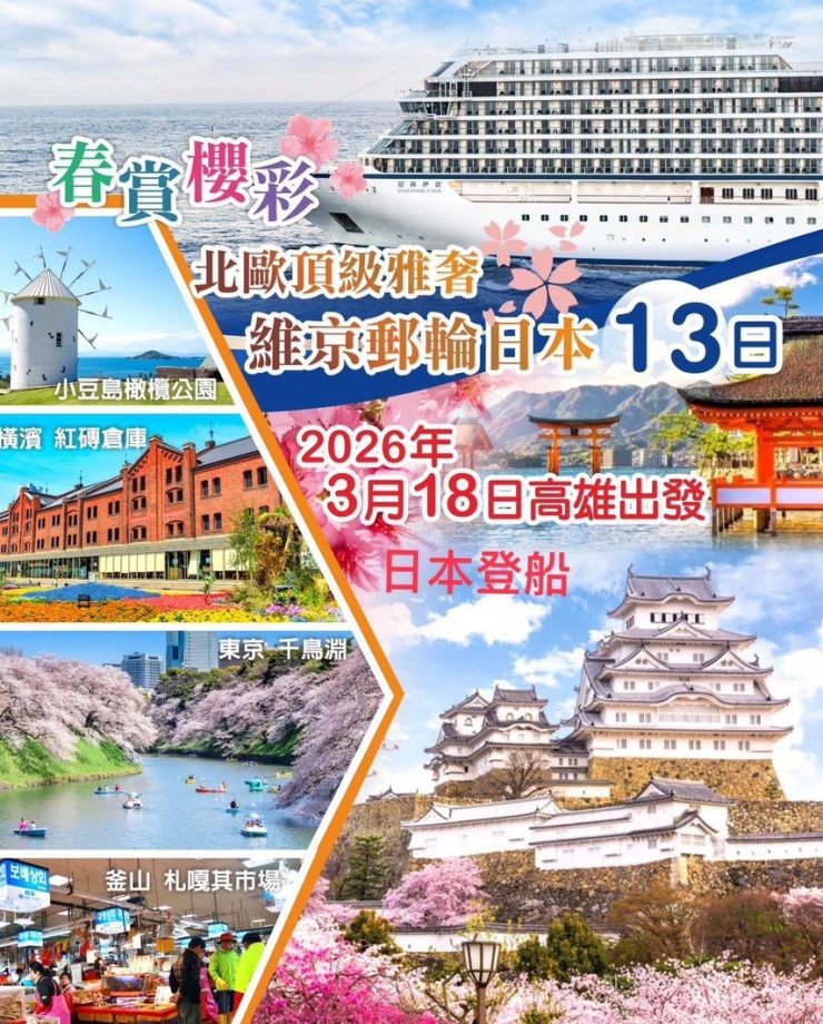 【2026/03/18】頂級靜奢~維京郵輪日本名城名景 12日