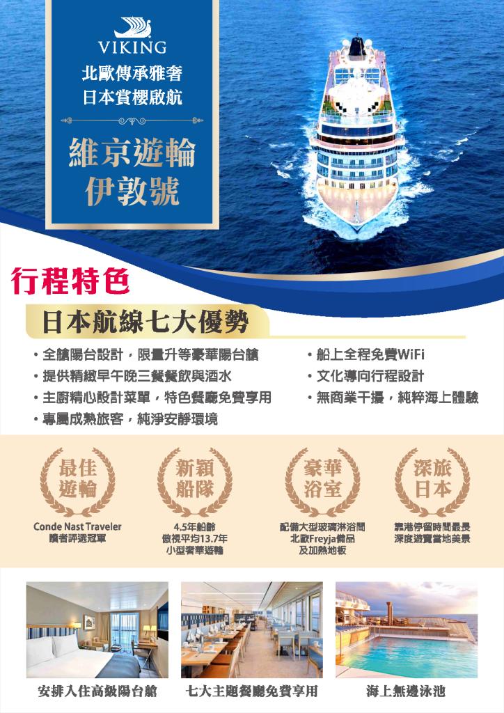 【2026/03/18】頂級靜奢~維京郵輪日本名城名景 12日
